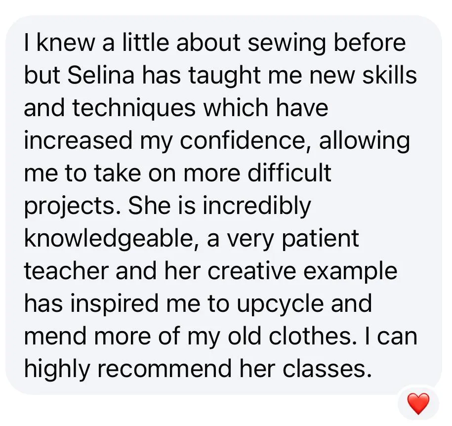 ✨I’ve taught at TAFE, lecturing in design and production and was part of a team introducing Vocational Education Training to high school students. Here I found my love of teaching and seeing confidence grow in students when they mastered new sewing or design skills. It lights me up seeing people start believing in themselves and their creative ability!